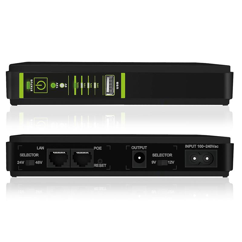 Description: UPS ERA PLUS DC 9VDC / 12VDC – POE 24VDC / 48VDC – USB 5VDC TOGETHER ON, Power 25W, Autonomy up to 240 minutes