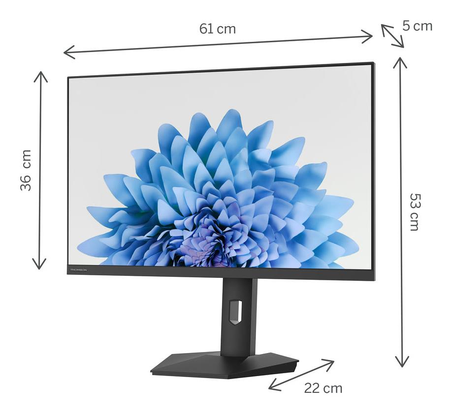 Summary: Thomson M27FB5C15. Display diagonal: 68.6 cm (27″), Display resolution: 1920 x 1080 pixels, HD type: Full HD, Response time: 14 ms, Native aspect ratio: 16:9, Viewing angle, horizontal: 178°, Viewing angle, vertical: 178°. Built-in speaker(s). VESA mounting, Height adjustment. Product colour: Black