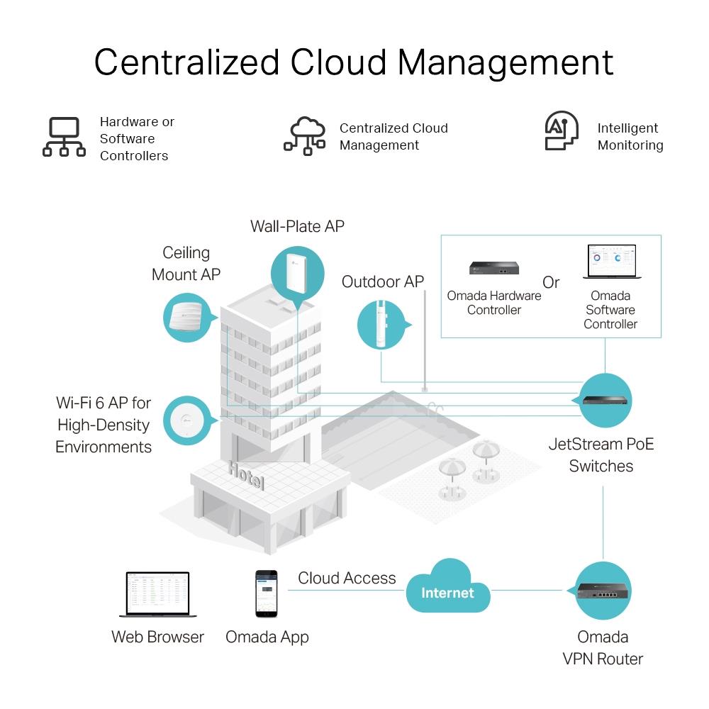 - Integrated into Omada SDN: Zero-Touch Provisioning***, Centralized Cloud Management, and Intelligent Monitoring
