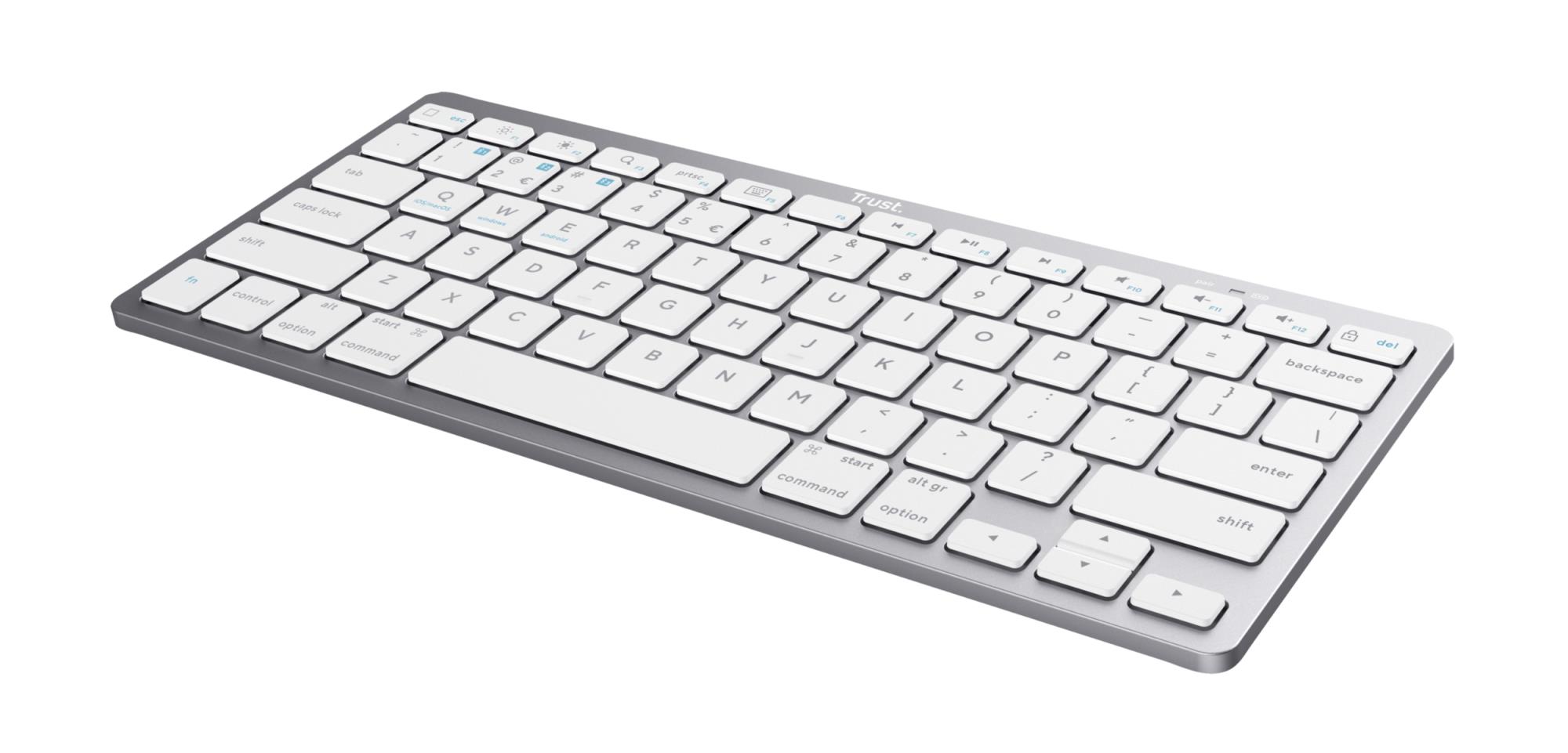 Trust 24651. Keyboard form factor: 75%. Keyboard style: Straight. Connectivity technology: Wireless, Device interface: Bluetooth, Keyboard key switch: Scissor key switch, Keyboard layout: QWERTY, Keyboard number of keys: 85, Recommended usage: Universal. Product colour: Silver