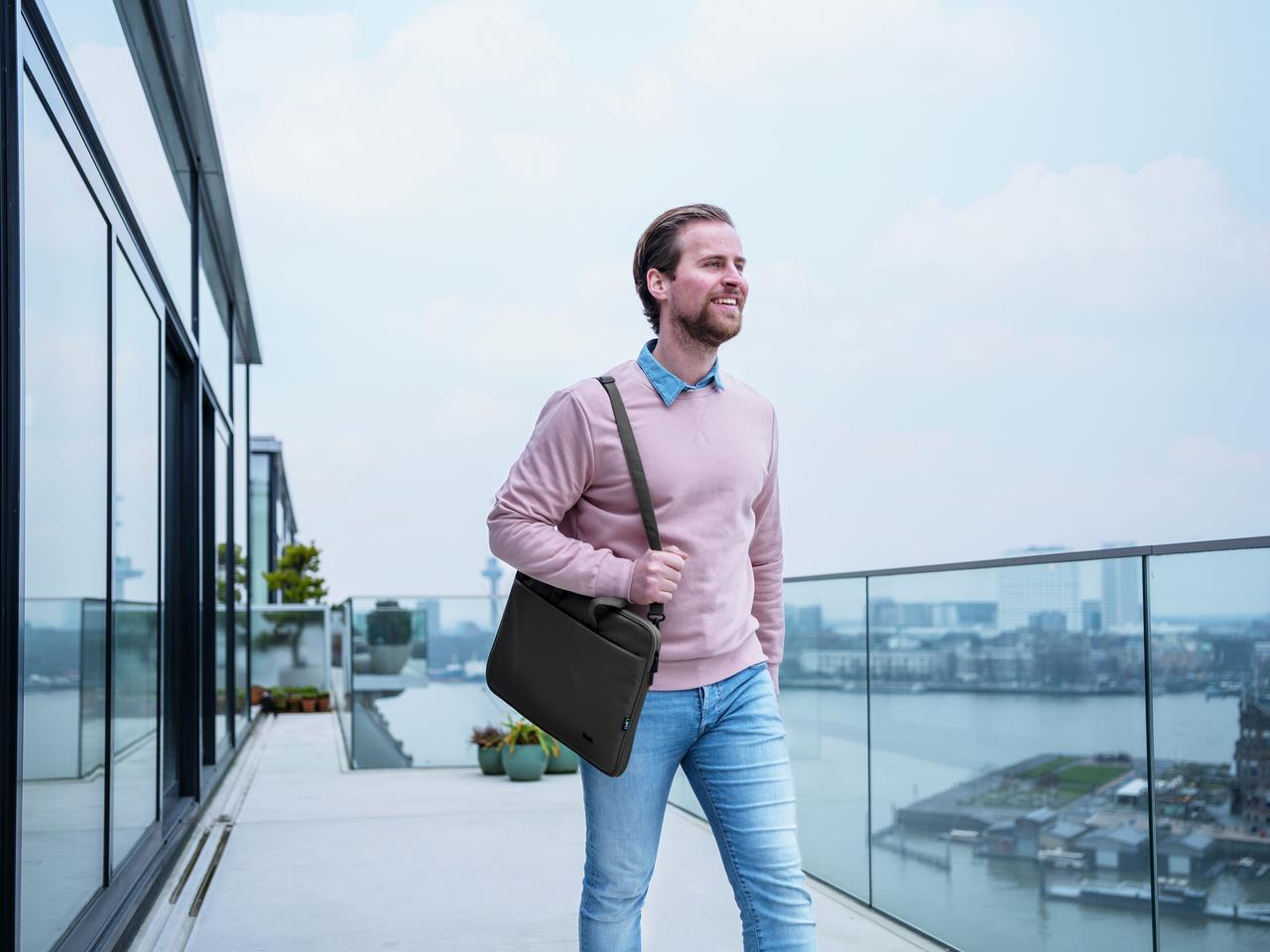 Eco-friendly slim laptop bag made of recycled PET materials; for laptops up to 16 inches