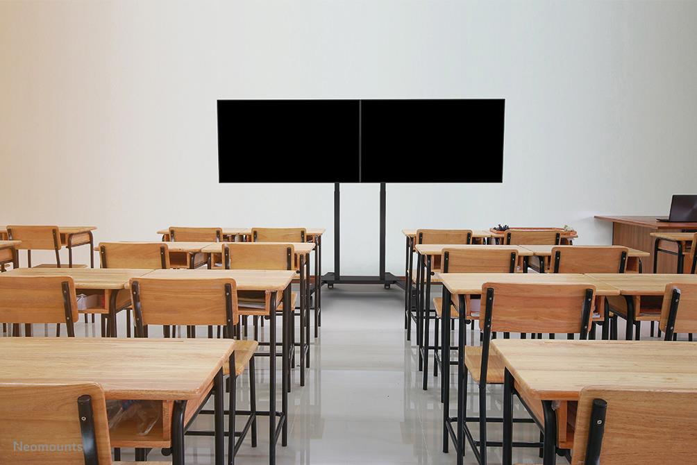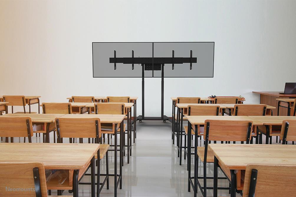 The Neomounts ADM-875BL2 is a dual screen adapter optional for the FL55-875BL1 mobile floor stand and WL55-875BL1 wall stand. The adapter allows the installation of 2 screens from 42" up to 65" with a maximum weight of 50 kg per screen. The height adjustable brackets ensure perfect alignments of the screens. It is possible to lock these brackets, using a padlock (not included). It is also possible to install a XXL display up to VESA 2000×600 mm and max 100 kg.
