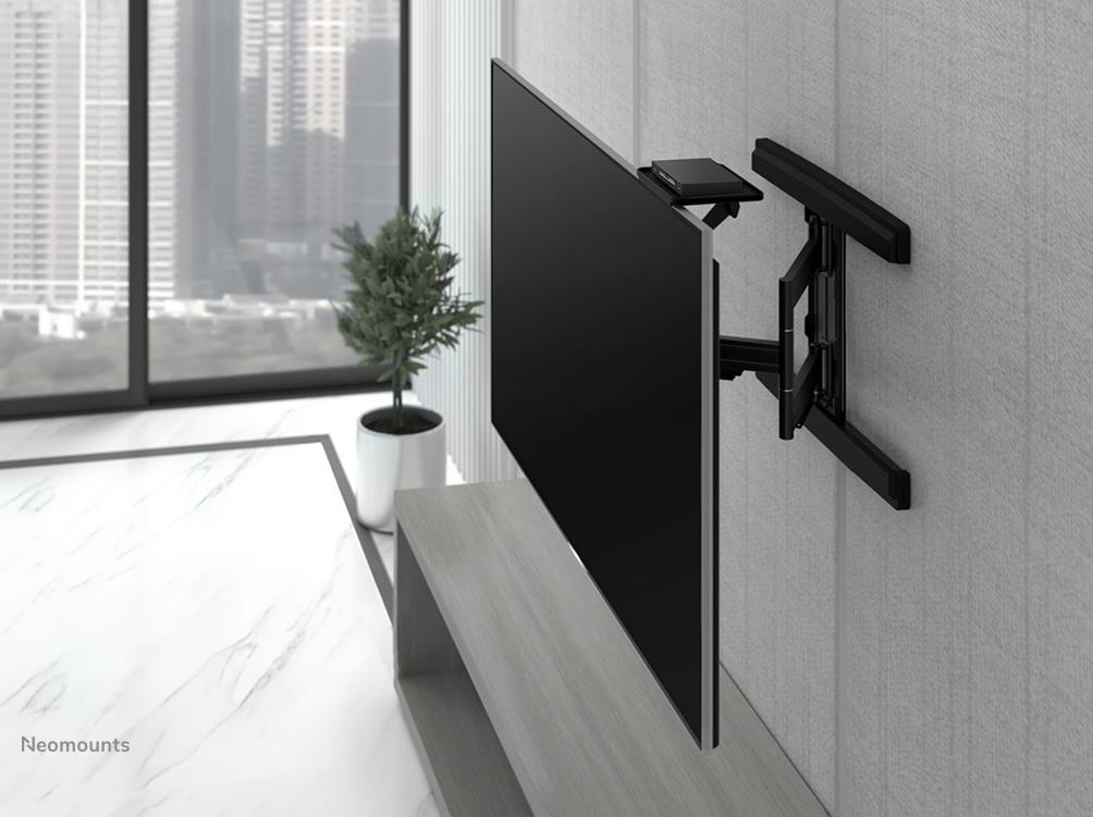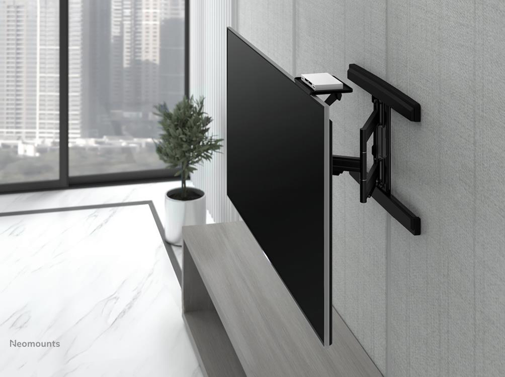The Neomounts AWL28-210BL1 is a universal multimedia shelf with a width of 18 cm and very useful as support for multimedia devices and accessories, like a webcam, media player or remote control. The shelf has safety ledges all around for safe and solid positioning of your devices. The AWL28-210BL1 is suitable for most TVs and can be locked into position using the convenient knob. The shelf is very easy to install; no tools are required.