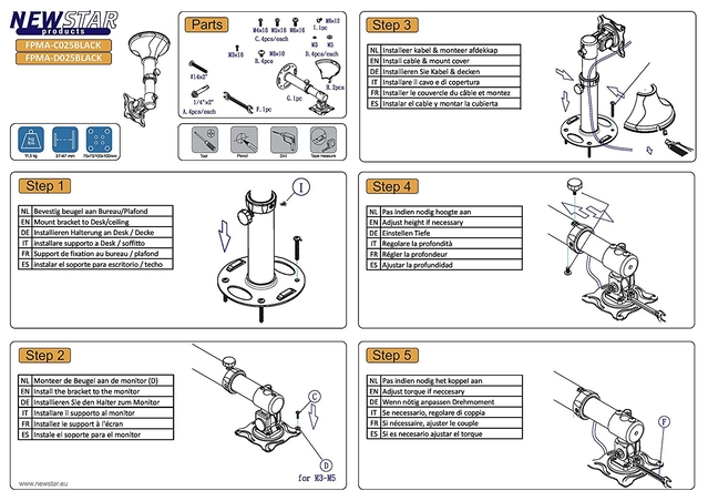 Vendor Homepage: http://en.newstar.eu/av-mounts/flat-screen-mounts/ceiling-mounts/newstar-flat-screen-ceiling-mount-6/