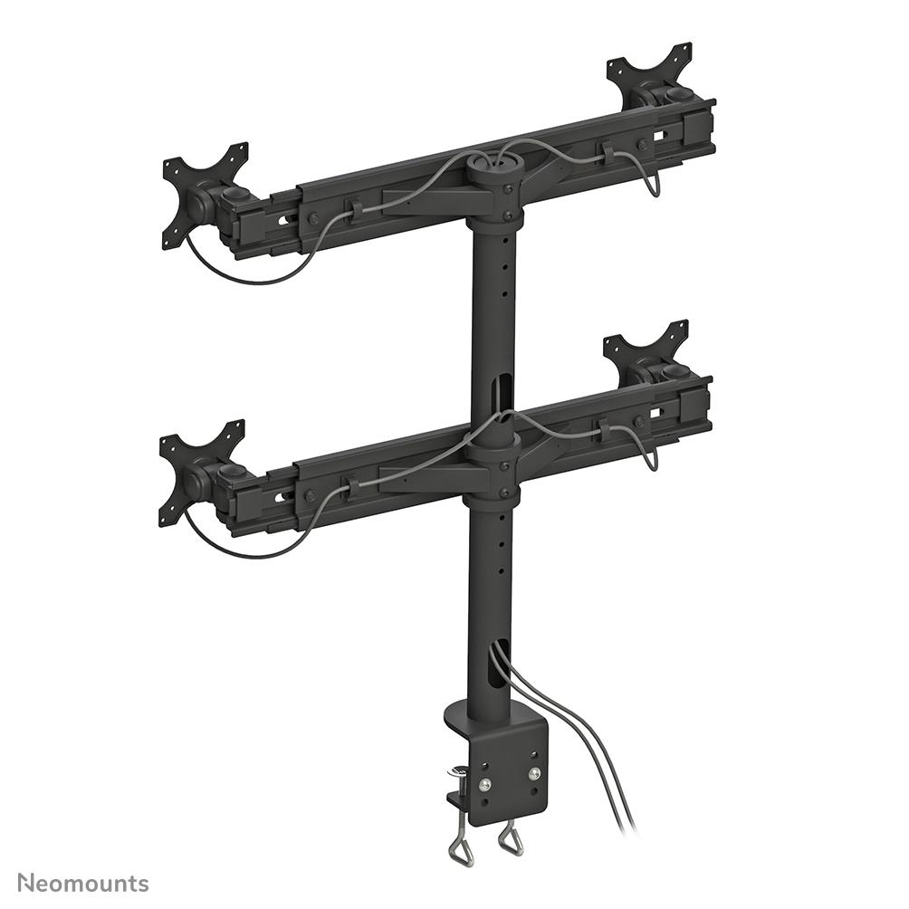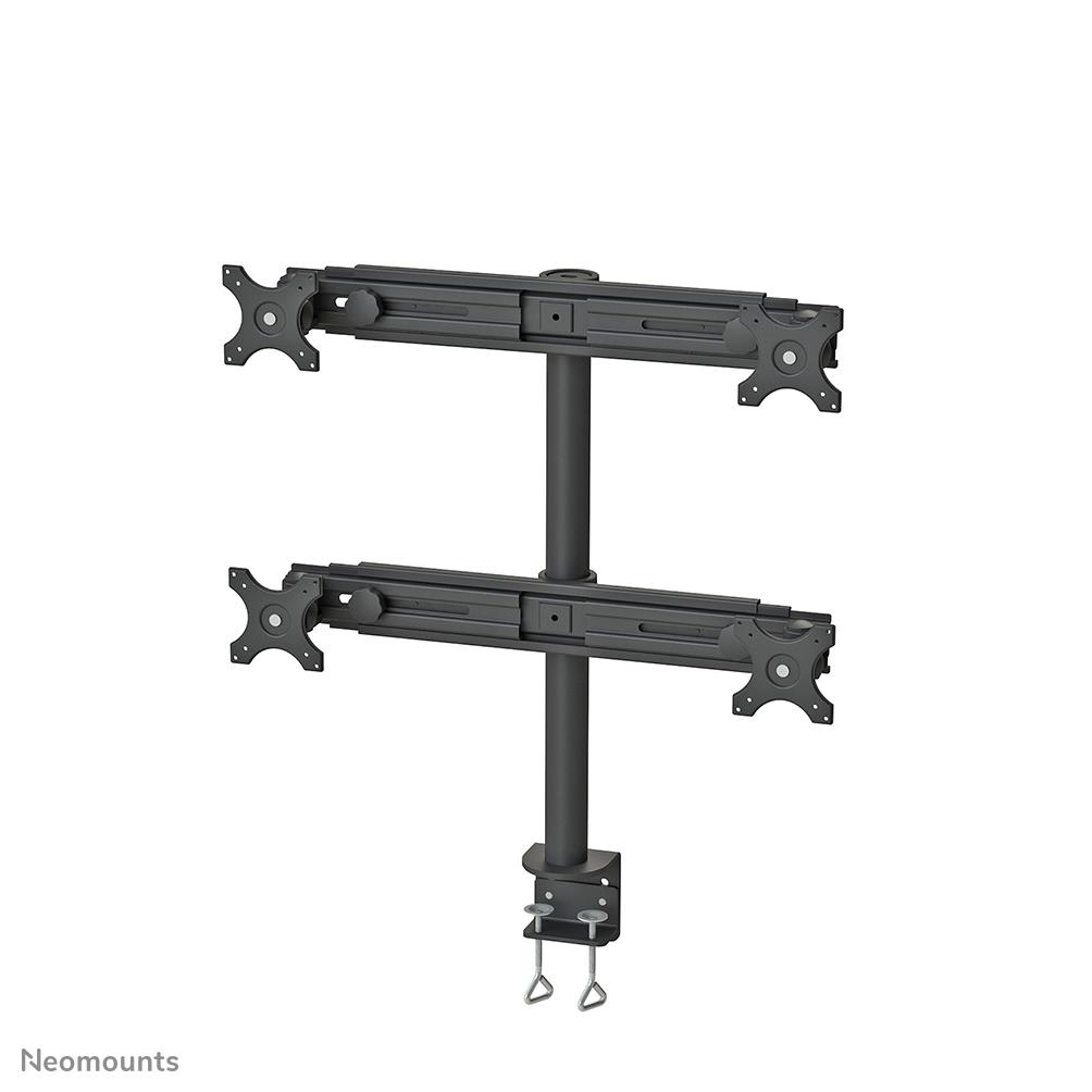 The Neomounts desk mount, model FPMA-D700D4 is a tilt-, swivel and rotatable desk mount for 4 flat screens up to 30". This mount is a great choice for space saving placement on desks using a desk clamp.