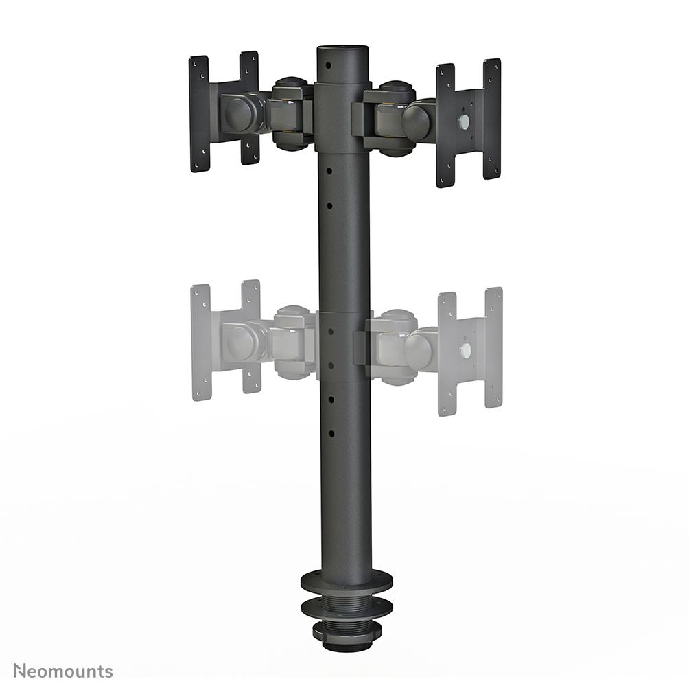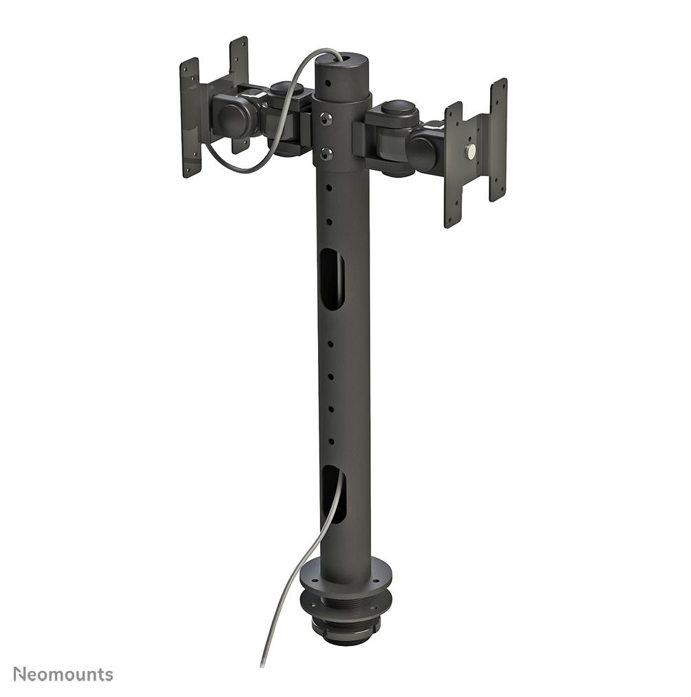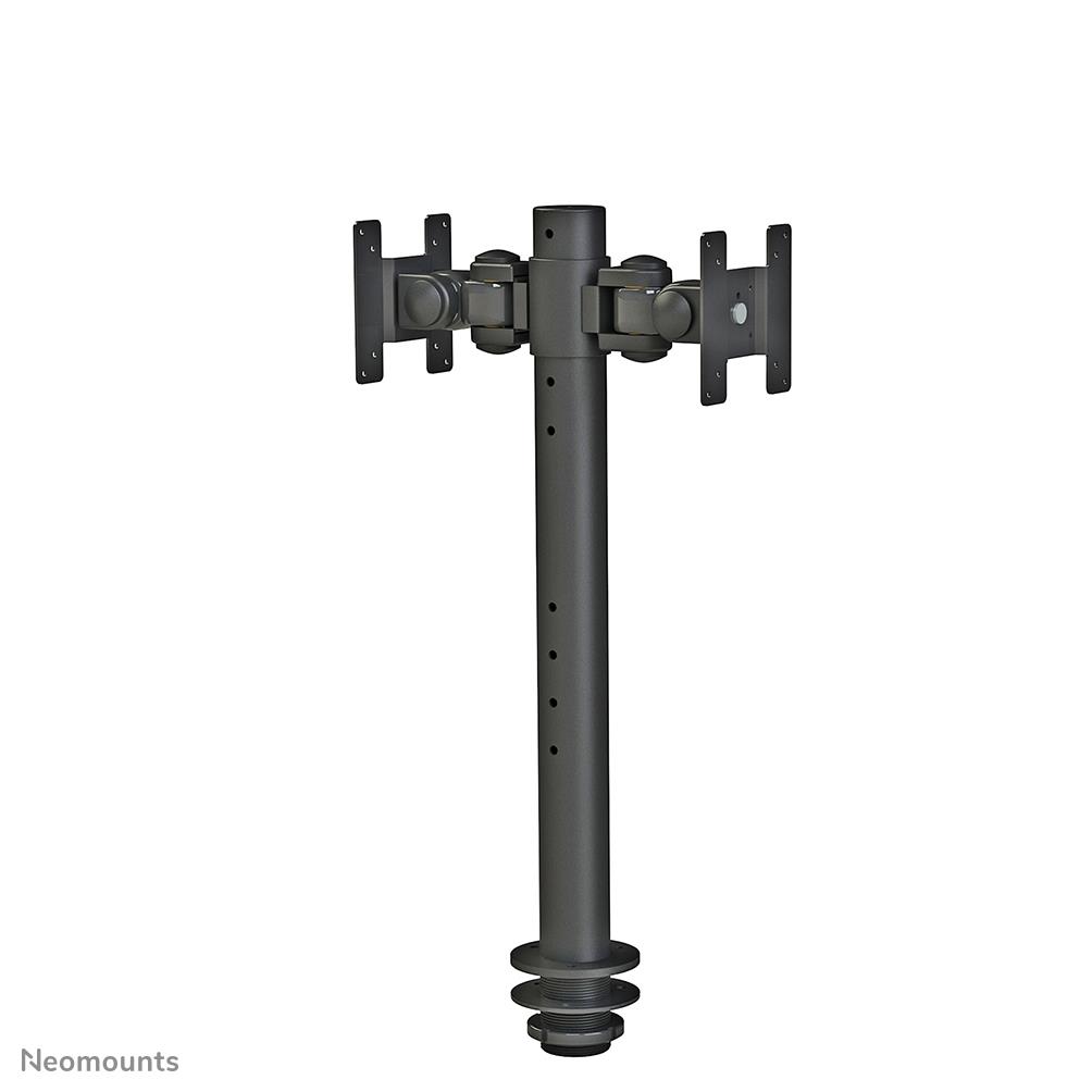 The Neomounts desk mount, model FPMA-D050DBLACK is a dual-sided tilt-, swivel and rotatable desk mount for flat screens up to 30". This mount is a great choice for space saving placement on desks using a grommet mount.