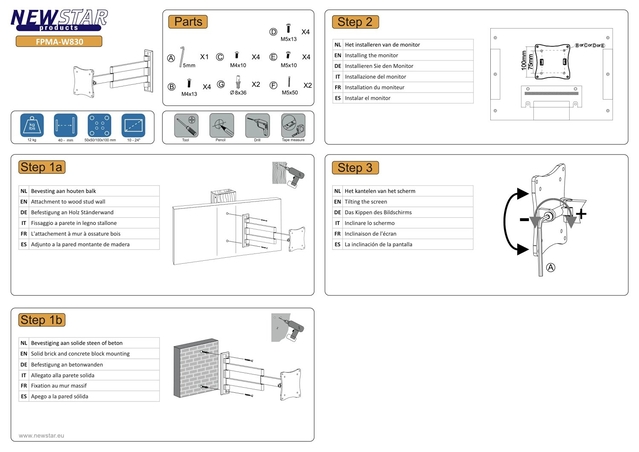 Vendor Homepage: http://en.newstar.eu/av-mounts/flat-screen-mounts/wall-mounts/newstar-flat-screen-wall-mount-9/?alstart=0