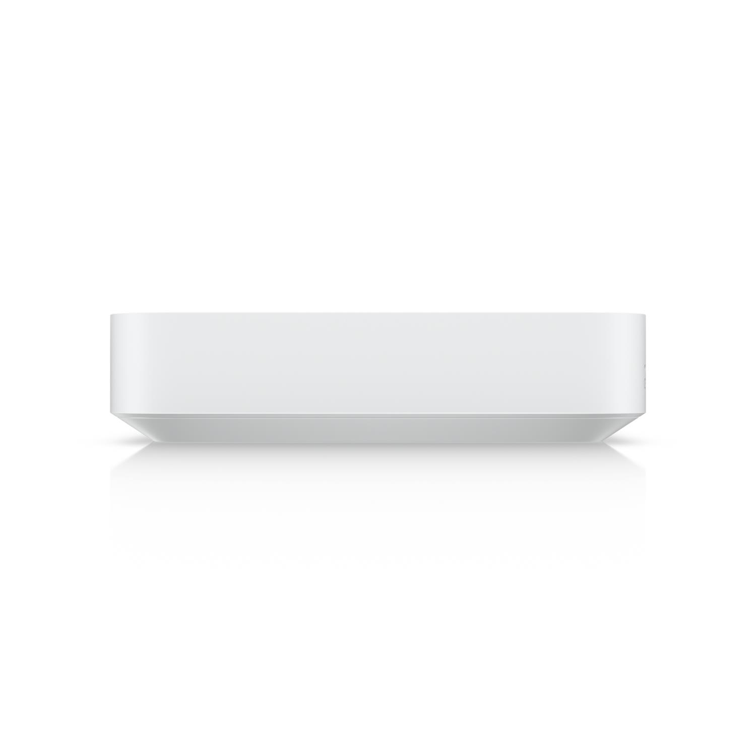 Compact 2.5G Cloud Gateway with 30+ UniFi device / 300+ client support, 1.5 Gbps IPS routing, and selectable NVR storage.