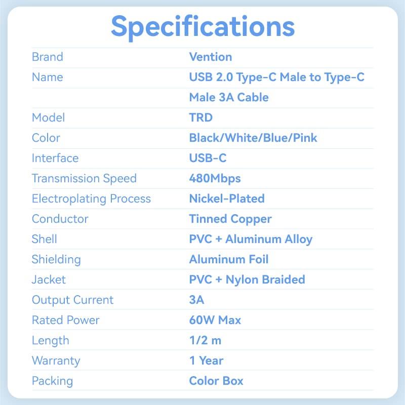 | Vendor Homepage | https://ventiontech.com/products/usb-2-0-type-c-male-to-type-c-male-3a-cable-1m-black-aluminum-alloy-type?_pos=1&_psq=TRDBF&_ss=e&_v=1.0&variant=45968515137702 |