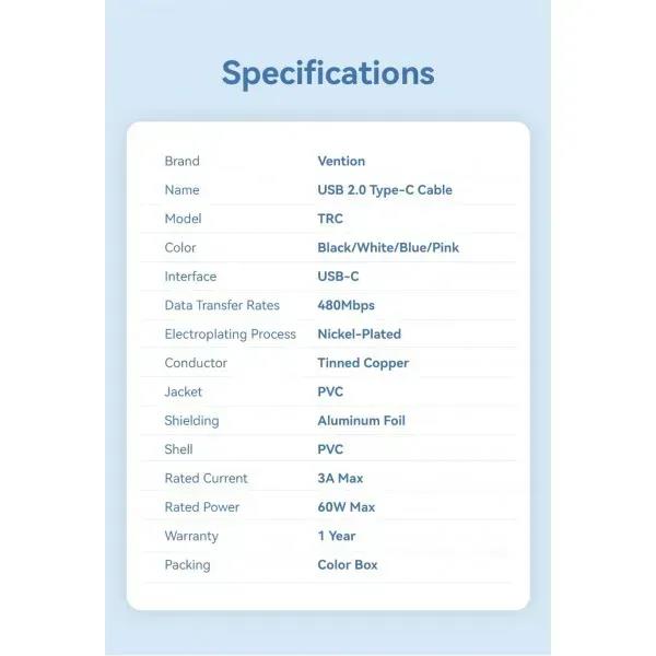 | Vendor Homepage | ventiontech.com/products/usb-2-0-type-c-male-to-type-c-male-3a-cable-1m-black-aluminum-alloy-type?srsltid=AfmBOoqjwJrX7CHqjaRuDRCne02gbQhBIUlwYPSmsO4yoWAMpHYgYClu |