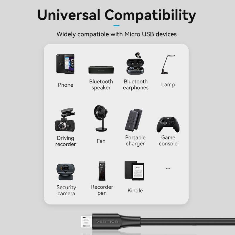 Universal Compatibility: You will find that this cable is widely compatible with a vast array of Micro USB devices. Whether you have smartphones from brands such as Samsung, Huawei, Xiaomi, OPPO, and Vivo, or devices like Bluetooth speakers, headphones, cameras, game consoles, and many more, this cable has you covered.