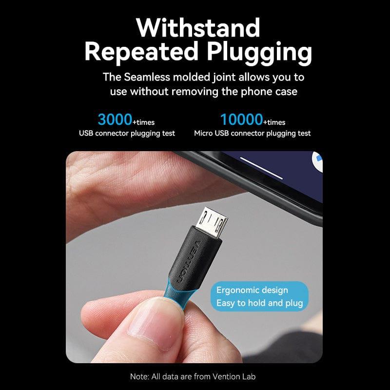 The Vention Micro USB Charging Cable is meticulously designed to offer fast and reliable charging capabilities alongside high-speed data transfer functionality. With its top-of-the-line internal structure and a robust, reinforced tail, this cable is built to endure the rigors of daily use, making it an essential accessory for all of your Micro USB devices.