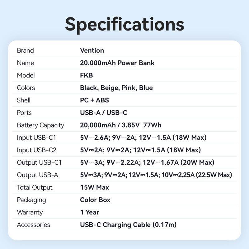 | Vendor Homepage | https://ventiontech.com/products/20000mah-power-bank?_pos=1&_psq=FKBB0-C&_ss=e&_v=1.0&variant=46381293207718 |