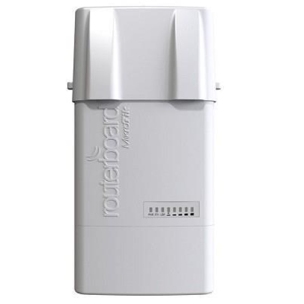 BaseBox 5 (RouterBOARD 912UAG with 600Mhz Atheros CPU, 64MB RAM, 1xGigabit LAN, USB, miniPCIe, built-in 5Ghz 802.11a/n 2×2 two chain wireless with two RP-SMA connectors, RouterOS L4, outdoor enclosure, POE, PSU, pole mount, rail mount).